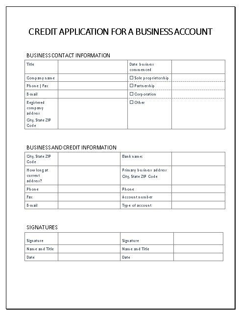 CREDIT APPLICATION FOR A BUSINESS ACCOUNT -
